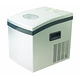 For high-volume, high-quality ice cubes from a portable machine, turn to this convenient countertop appliance. The easy-to-use ice maker produces up to 33 pounds of ice cubes per day--great for keeping guest's refreshments chilled at a weekend work conference or at a large party with family and friends. Change the size of the ice cubes with the simple press of a button--choose from 1/4-inch wide to 1/3-inch wide. The appliance also comes equipped with a fluidization system that ensures perfectly transparent ice cubes. Its internal fluidization system--a process normally only found in restaurant ice machines--freezes ice cubes in thin, transparent layers instead of one large block, which ensures crystal-clear results, eliminating any output of less desirable cloudy cubes. In addition to its portable design, the handy machine offers quick start-up times as well. Simply add water to the reservoir and plug it in--the unit will produce up to 28 square ice cubes in the first 18 minutes. Thoughtfully designed, the water reservoir removes for easy refilling, and an audible signal indicates when the 2-1/5-pound-capacity ice bin has reached capacity and/or when the 1-2/3-quart water reservoir needs to be re-filled. A full ice tank or empty water tank will cause the machine's compressor to stop automatically for safety and peace of mind. Other highlights include rugged construction with all internal screws made of stainless steel, integrated side handles for secure transport, and an attractive silver-spray finish. The 195-watt countertop ice maker measures 13-1/2 by 11-3/4 by 14 inches and carries a one-year limited warranty.